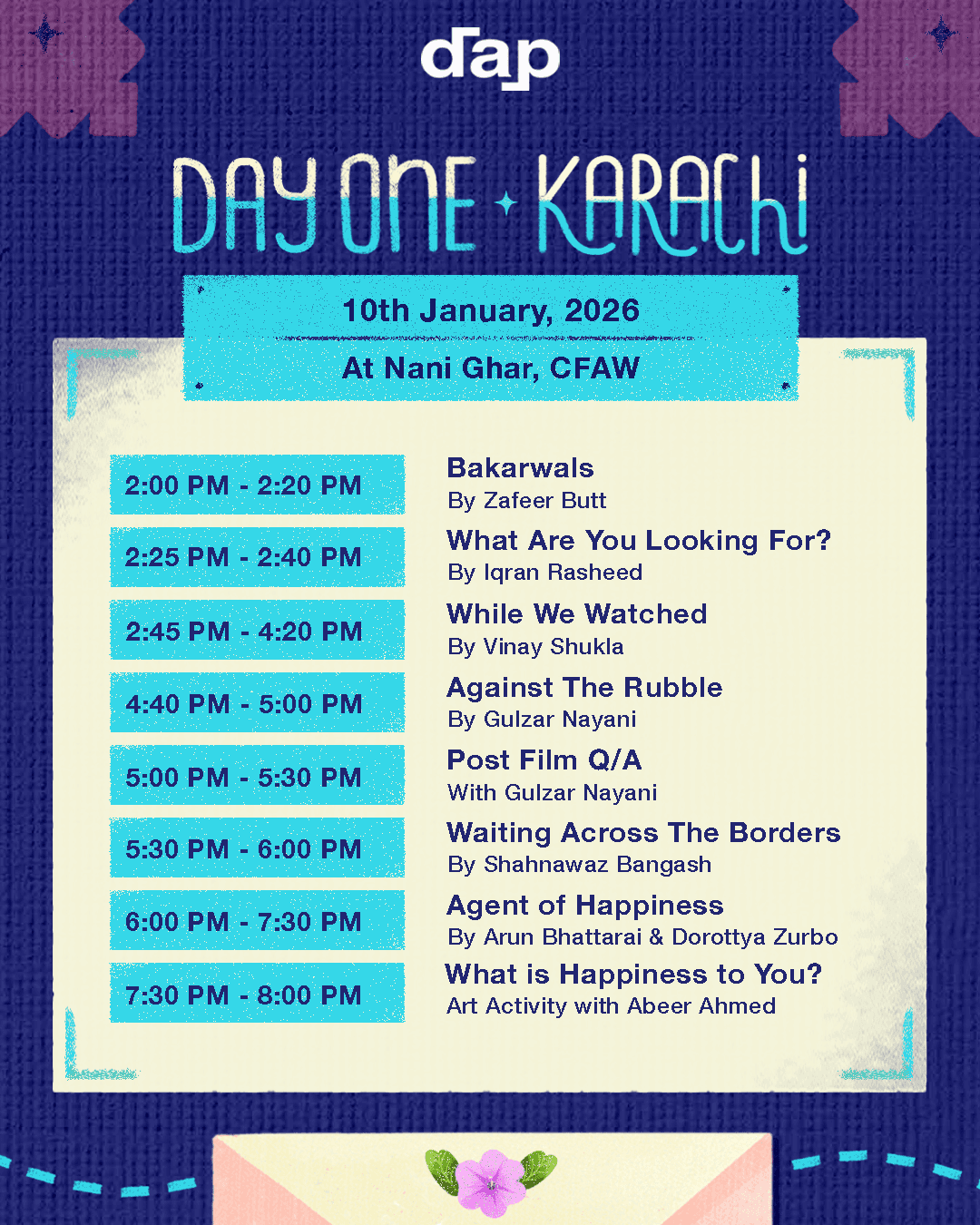 Our partner for this event is Nani Ghar, CFAW. This program is supported by Movies That Matter and the Embassy of France in Islamabad.