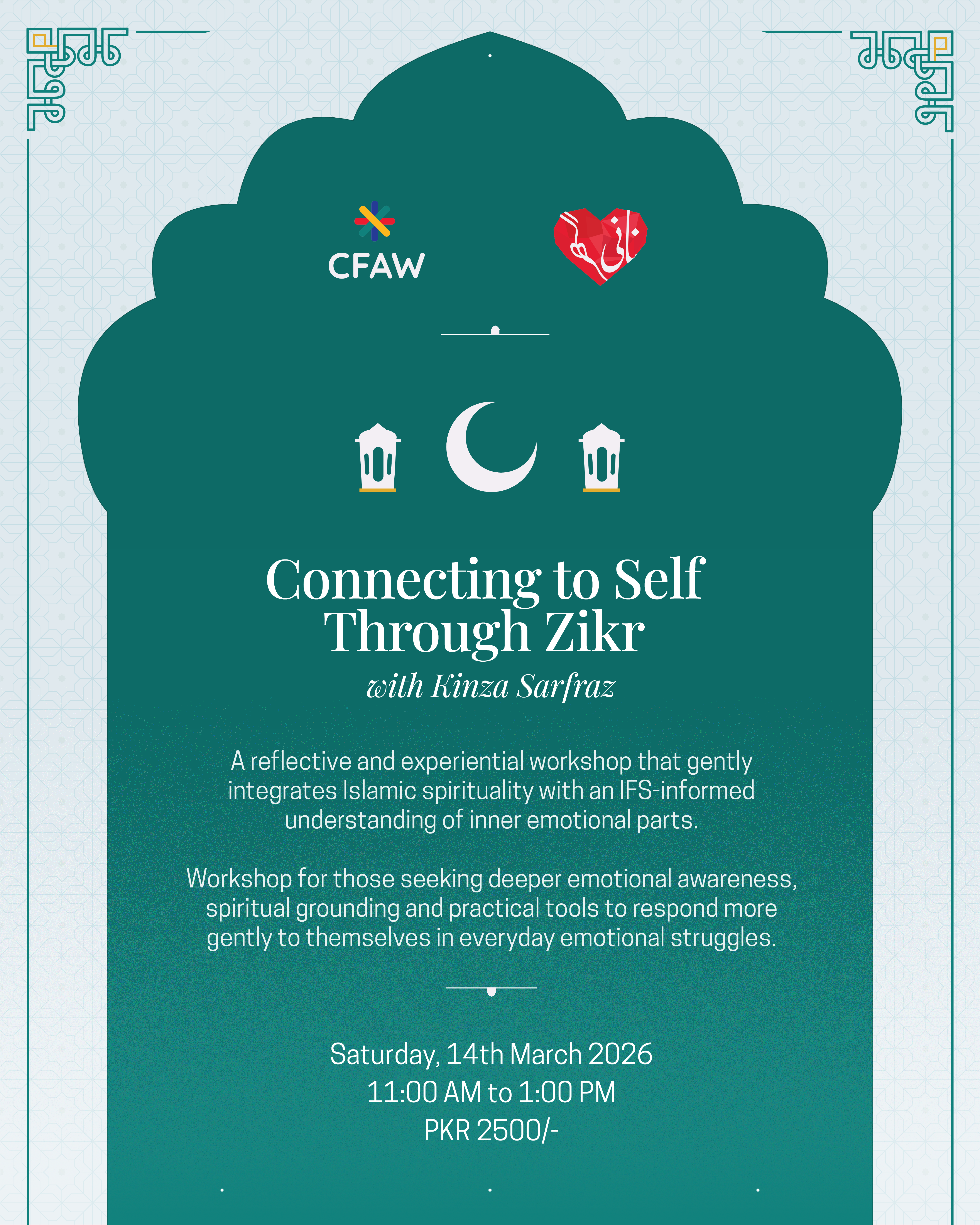 A reflective and experiential workshop that gently integrates Islamic spirituality with an IFS-informed understanding of inner emotional parts. We will be guided to notice the different emotional states within themselves such as shame, fear, anger, sadness or exhaustion and learn how to relate to these parts with compassion, rather than judgment or avoidance.