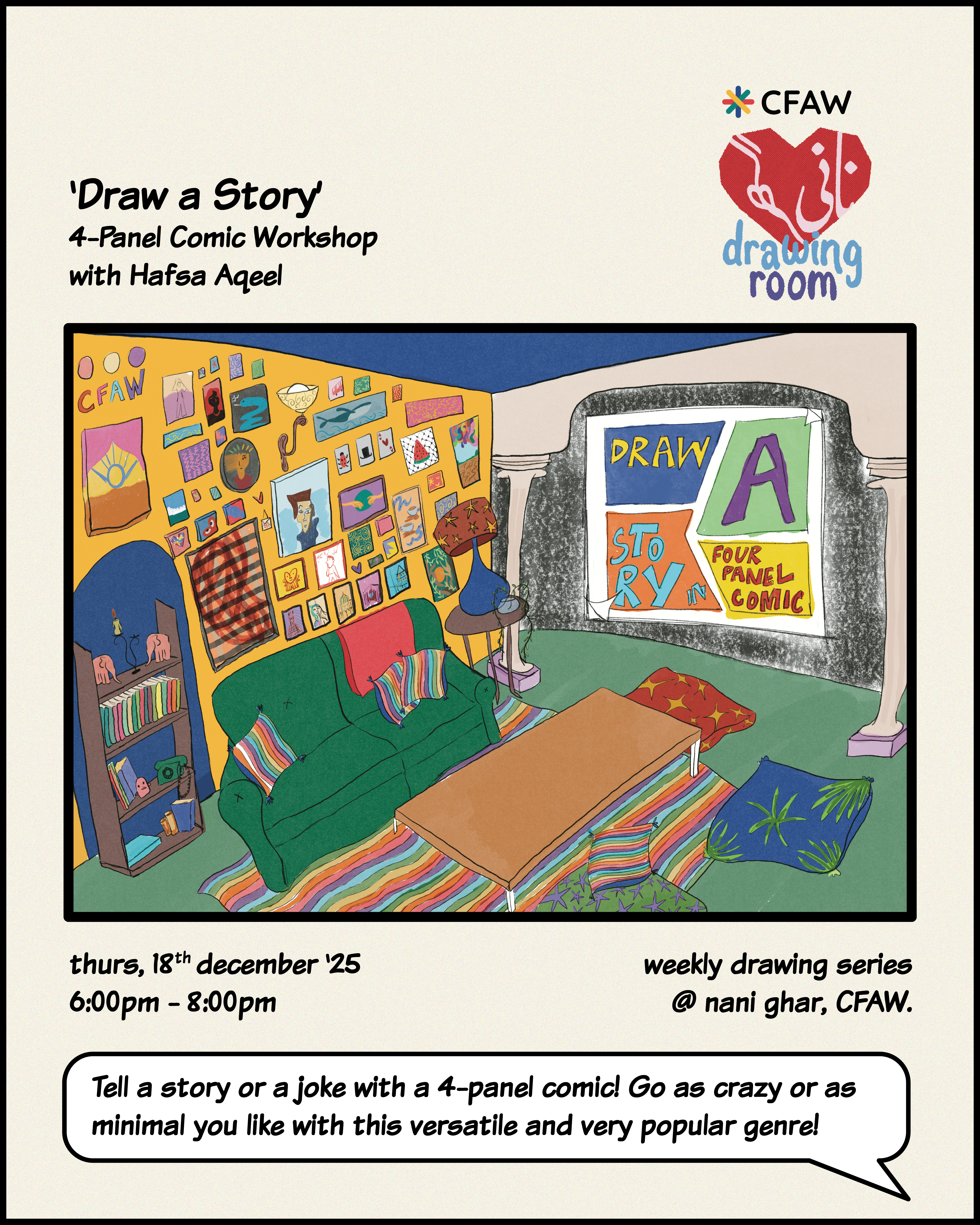 This workshop is free for all. We encourage minimal waste, so please bring your paper, sketchbooks, or other drawing instruments along with your creativity with yourself. We will have A4 sheets, basic pointer pens, pencils, and erasers available from our end if needed.