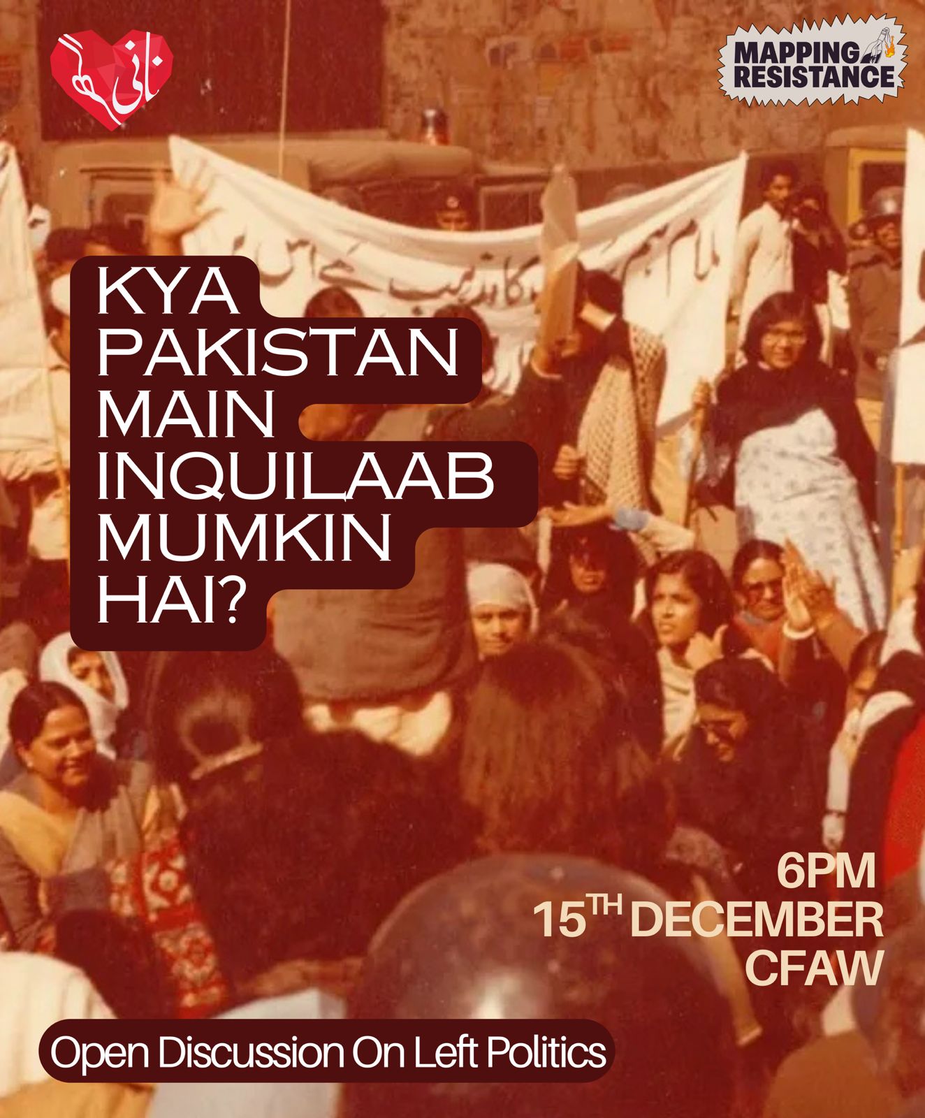 The role of Left politics has been invented and reinvented throughout the history of Pakistan. From electoral politics, to revolutionary struggle with students, workers, peasants, national and gender movements; there have been many routes taken by many organisations. We are hosting an open discussion about leftist organising and politics in Pakistan at the current moment, with reflections on the past. Some questions and ideas to consider: