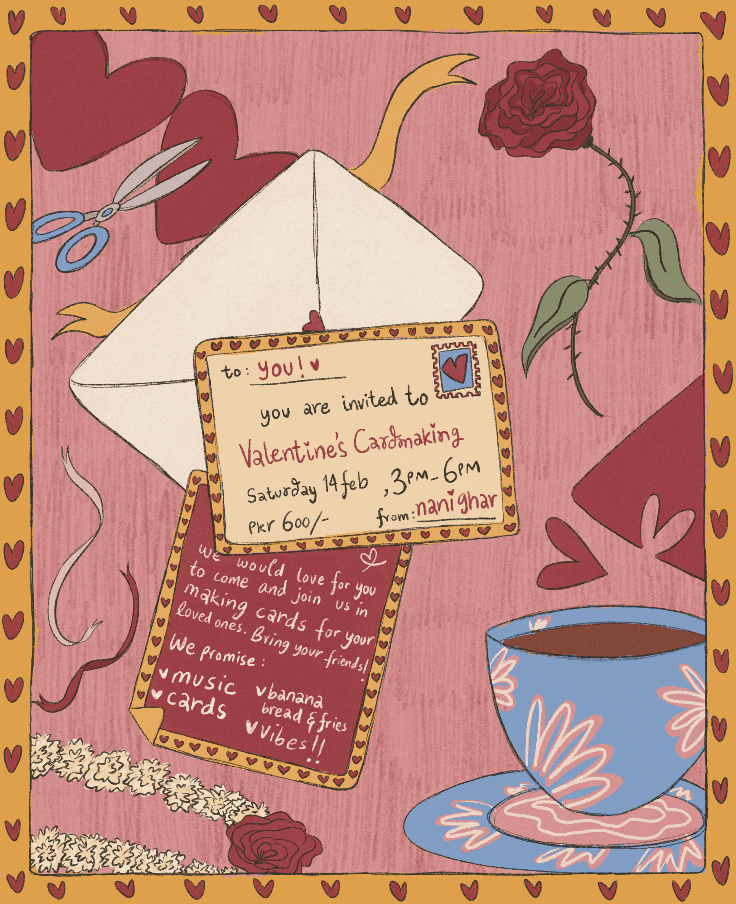 Team Nani Ghar invites you to Valentine's day cardmaking with us β₯οΈ Join us for an afternoon full of art, making cards, yummy banana bread & fries, music and overall amazing vibes.