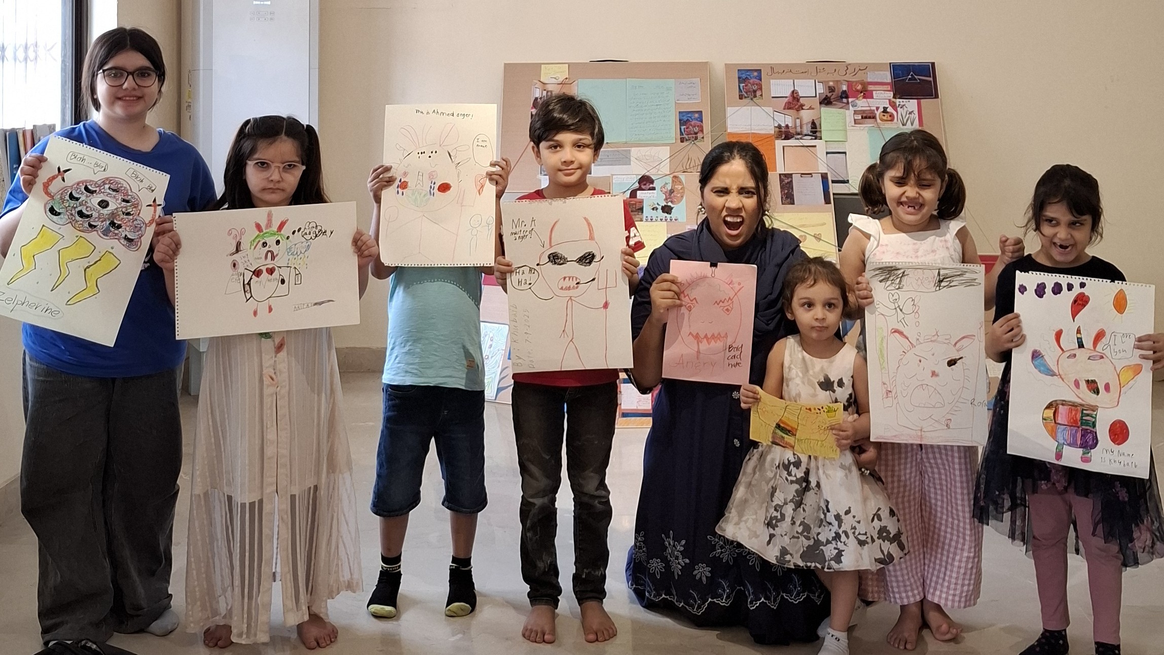 As everyone settled in, a brief discussion unfolded about the iceberg theory by Sigmund Freud. Alishba gently explained that the thoughts, feelings, and actions that we’re aware of is only the tip of the iceberg. Deep below the surface lies the unconscious mind, filled with buried emotions, memories, and dreams. “Sometimes our dreams are little whispers from that hidden part of us”. The children listened with wide eyes and then one by one, began sharing their strangest dreams. When one child giggled about seeing a unicorn stuffed inside a turkey, another added “an ant lifting heavy dumbbells!”, filling the room with laughter, confusion, and pure wonder.