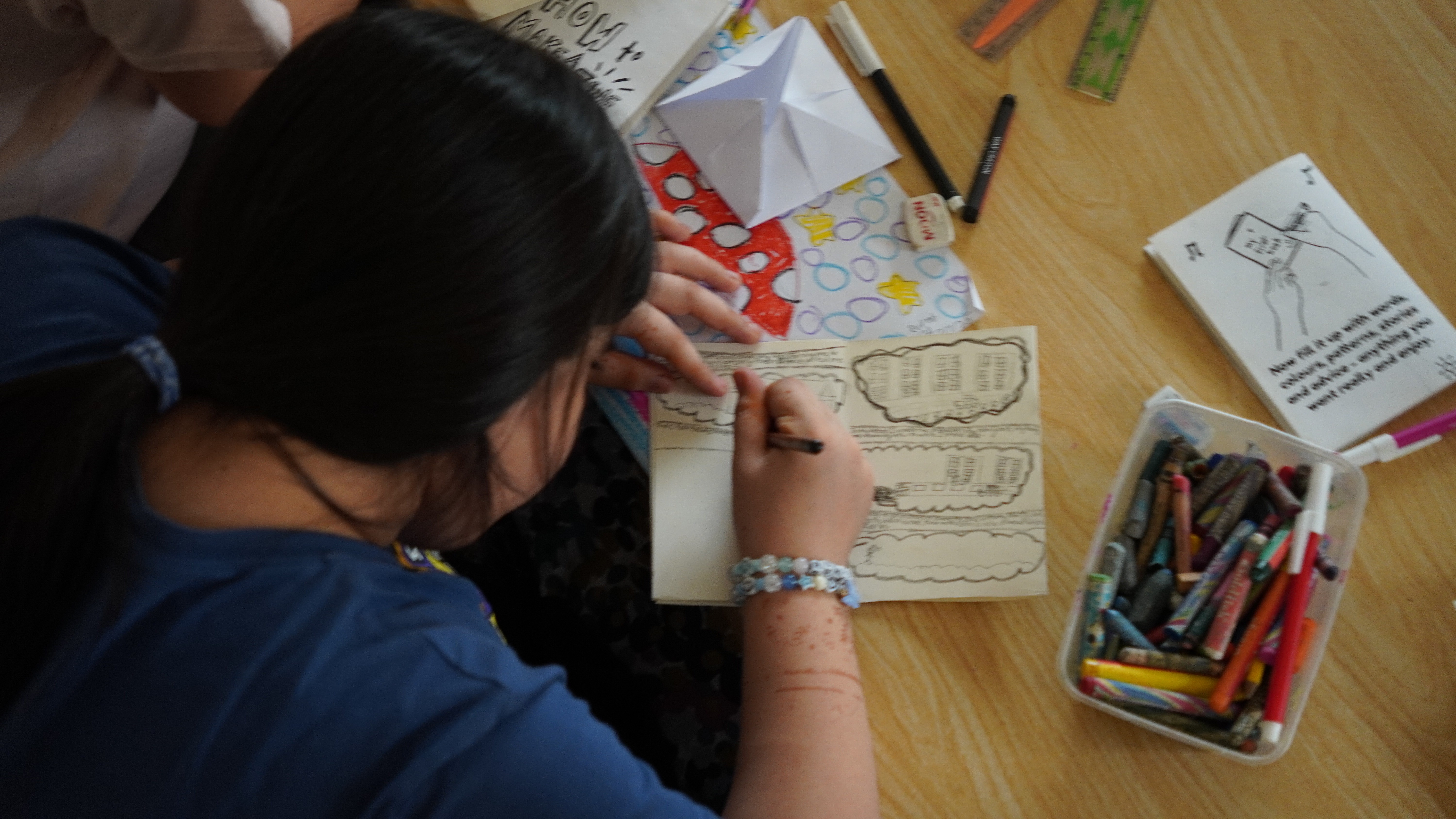 While adults often assume children don’t understand emotions, the truth isov, they feel deeply but don’t always have the tools to express it. This activity didn’t just stay within the pages of their booklets. It opened conversations about the environment, coping mechanisms, and interpersonal relationships. Additionally, the zine-making gave them something tangible to hold and share. To see their weird, wonderful ideas not just accepted but celebrated gave them a powerful sense of ownership, confidence, motivation, and pride that can’t be taught in books.