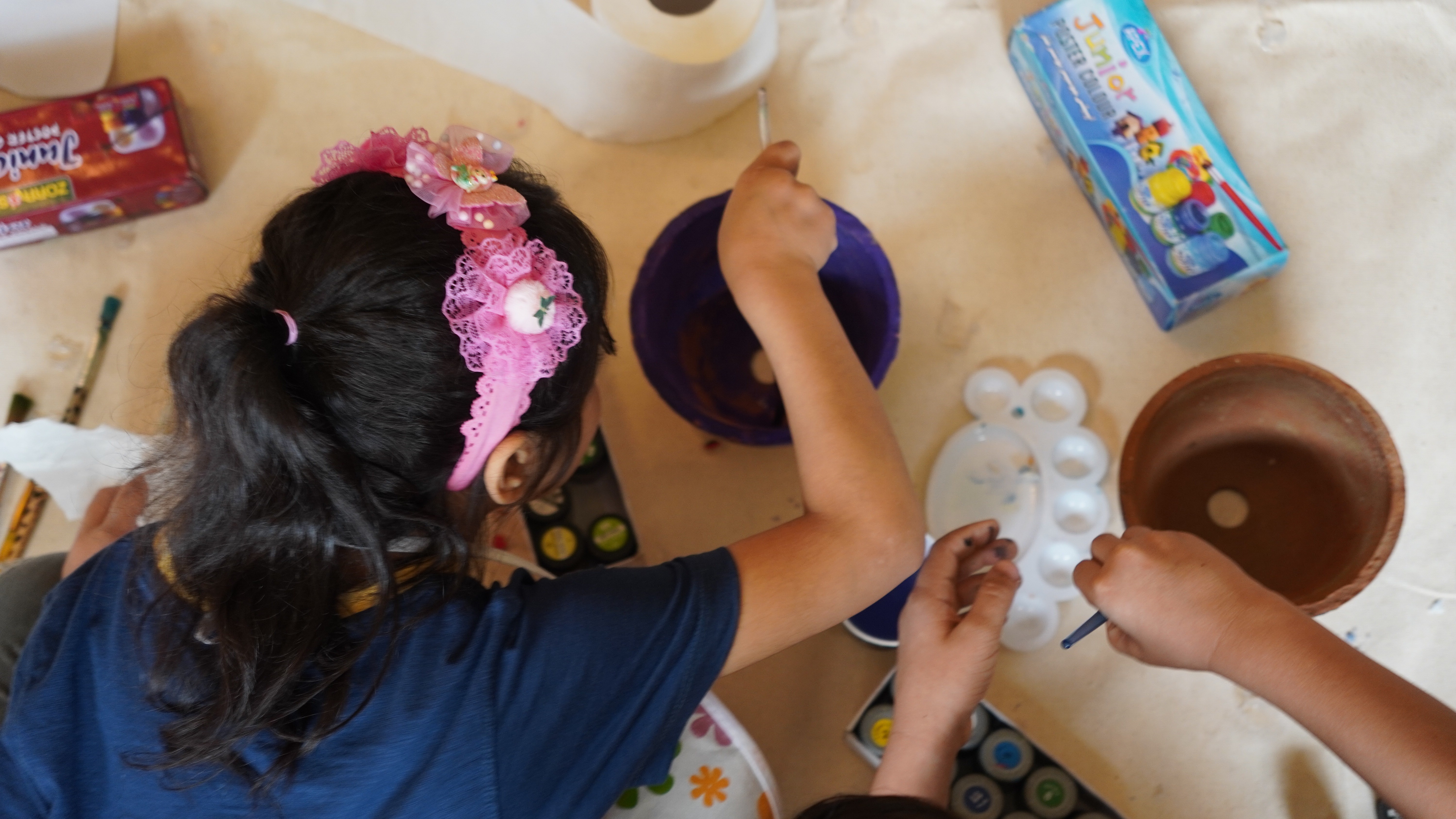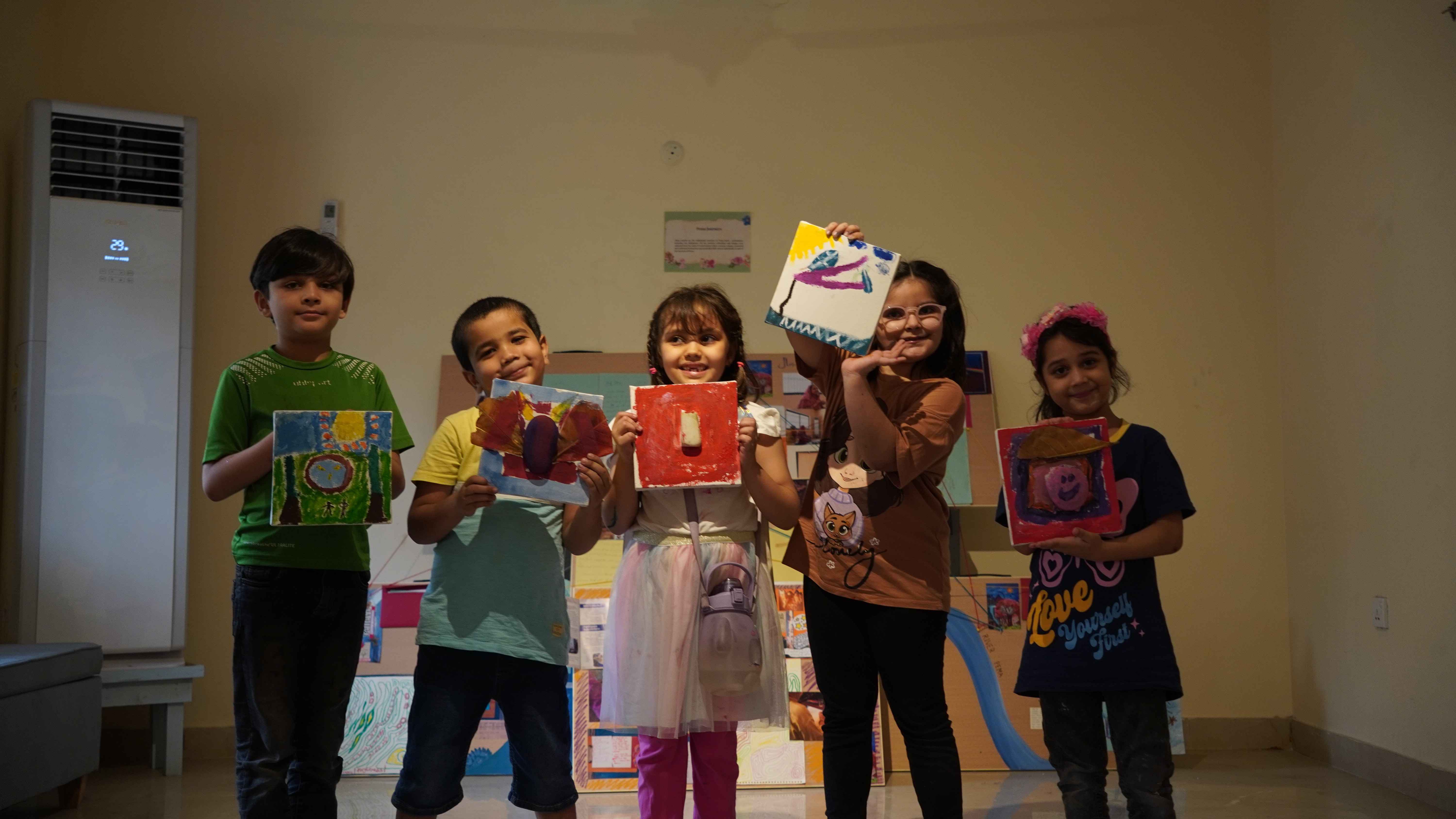 With that, the day’s activities unfolded. First activity of the day was pot painting and planting. The room transformed into a lively art studio as each child received a plain clay pot, ready to transform it into something personal and meaningful. This hands-on activity encouraged creativity while also offering a sensory experience. Some painted patterns, others added shapes or animals; a lion outside guarding the soil within. When one child learned through trial and error that painting inside the pot could harm the plant, it reflected how that simple mistake led to a powerful lesson in caring for life and how curiosity paired with consequences develops problem solving skills in early childhood.